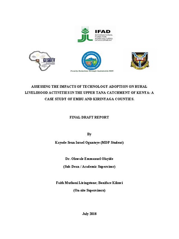 Assessing The Impacts Of Technology Adoption On Rural Livelihood Activities In The Upper Tana Catchment Of Kenya: A Case Study Of Embu And Kirinyaga Counties