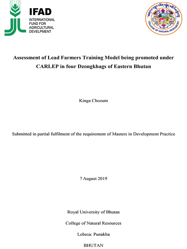 Assessment of Lead Farmers Training Model being promoted under CARLEP in four Dzongkhags of Eastern Bhutan
