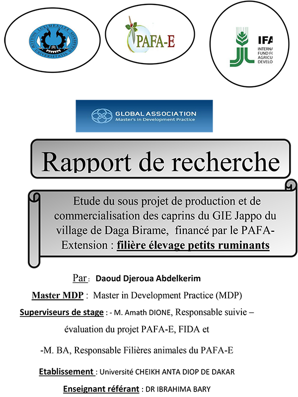Etude du sous projet de production et de commercialisation des caprins du GIE Jappo du village de Daga Birame, financé par le PAFA-Extension : filière élevage petits ruminants